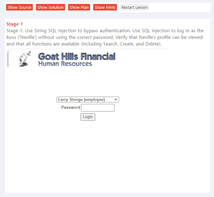 SQL Injection을 사용해서 올바른 패스워드를 사용하지 않고 Neville로 로그인하는 문제
