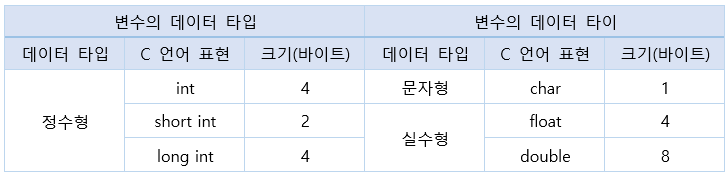 - C 언어에서 자주 사용하는 "기본 데이터 타입"