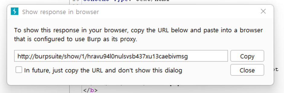 이 때, 오른쪽 마우스를 클릭하고 Show response in brower를 누르면