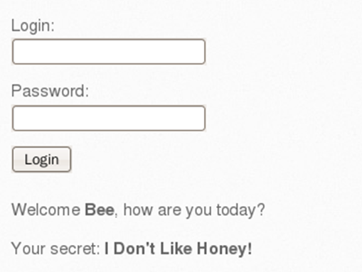 입력 후 제출 버튼을 누른 뒤, 개인정보를 출력하는 sqli_16.php에서 ‘bee’ 사용자로 로그인하면