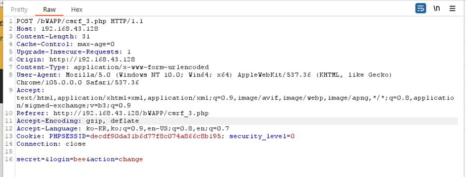 | [bee-box 웹 모의해킹] 비밀번호 변경 (Change Password) (0) | 2022.09.28 |