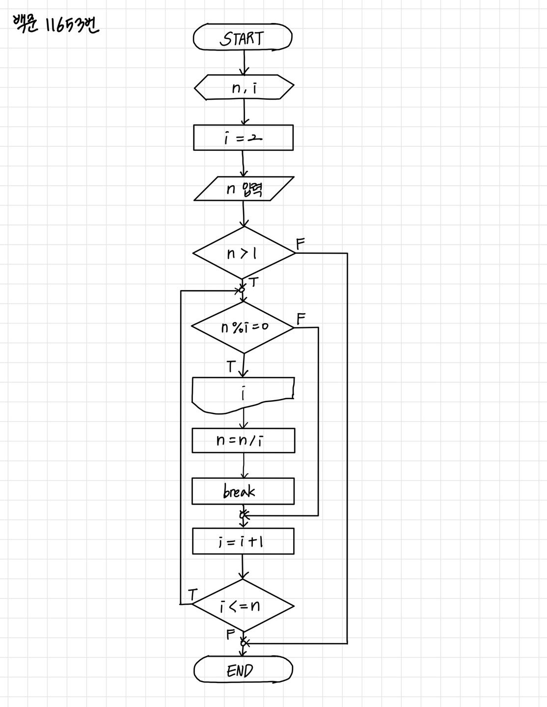 [순서도 실습] 백준 11653번 - 소인수분해 (C) 본문