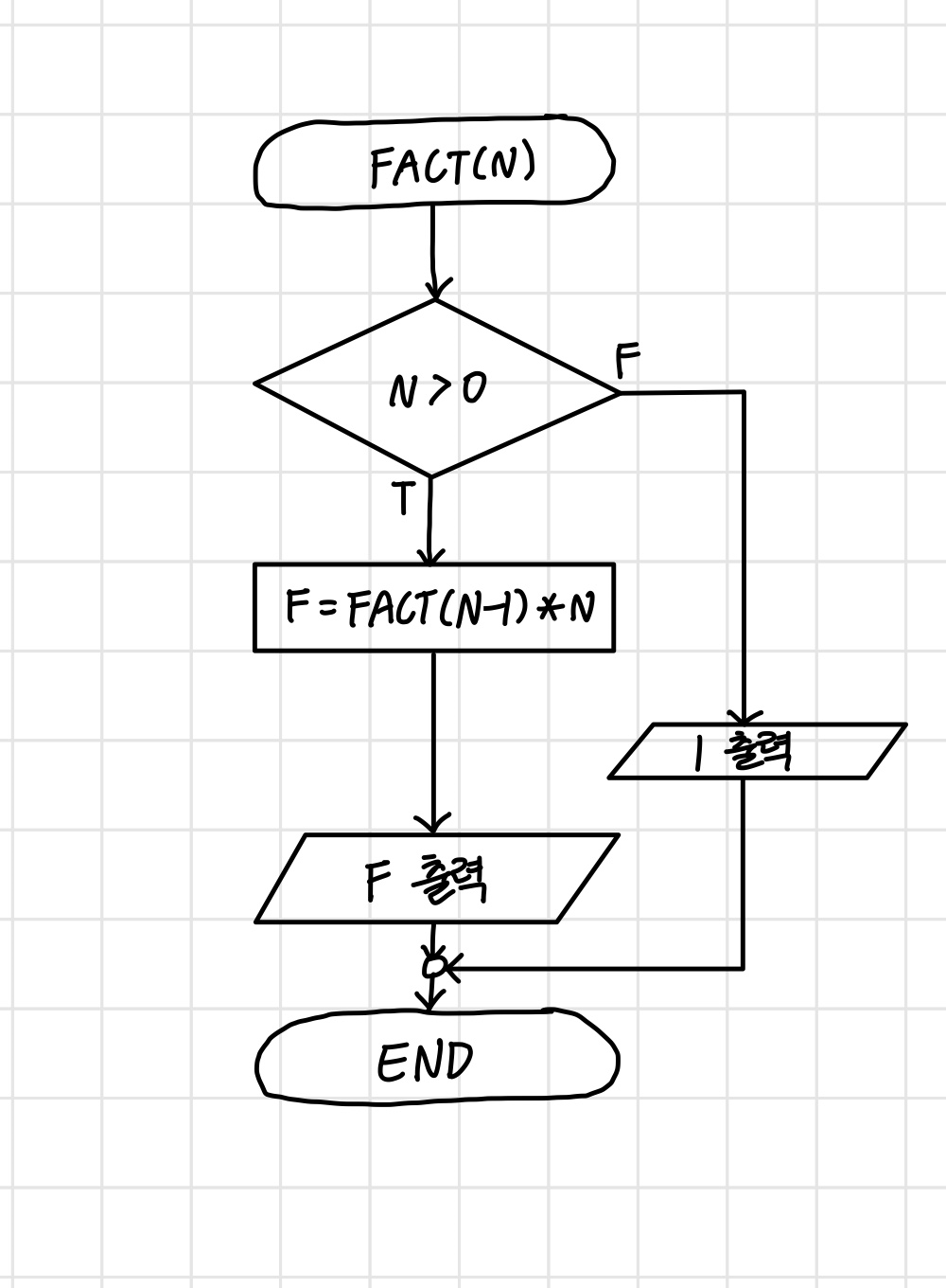 - 재귀호출을 위하여 START라는 시작 기호 대신, 자연수 N의 누승을 계산하는 알고리즘 이름과 인자 N을 괄호와 함께 명시