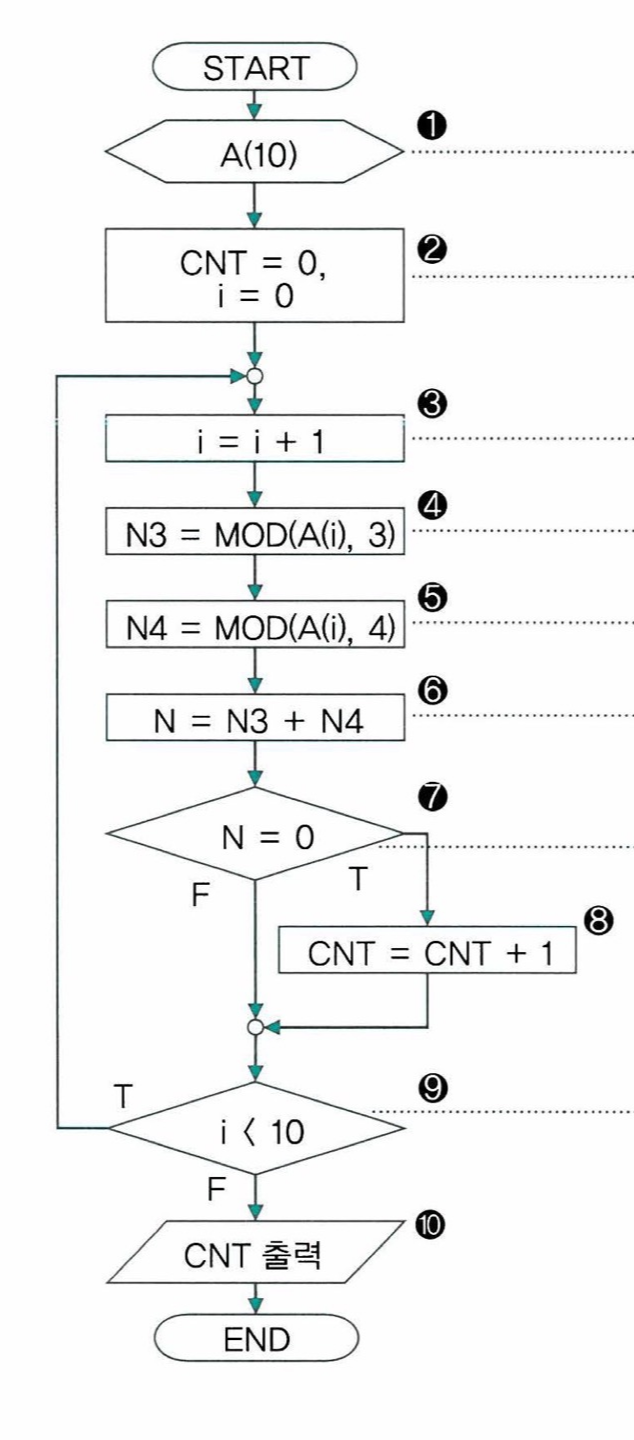 - 반복문 : N3에서 배열 A의 i번째 원소가 3의 배수인지 검사하고, N4에서 배열 A의 원소가 4의 배수인지 검사한다. N3과 N4의 합이 0이면 배열 A의 i번째 원소는 3의 배수이면서 4의 배수이라는 뜻이므로 CNT를 1 증가시킨다.