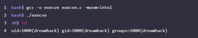 execve 셸코드는 임의의 프로그램을 실행하는 셸코드인데, 이를 이용하면 서버의 셸을 획득할 수 있다.