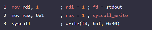 출력은 stdout으로 할 것이므로, rdi를 0x1로 설정한다.