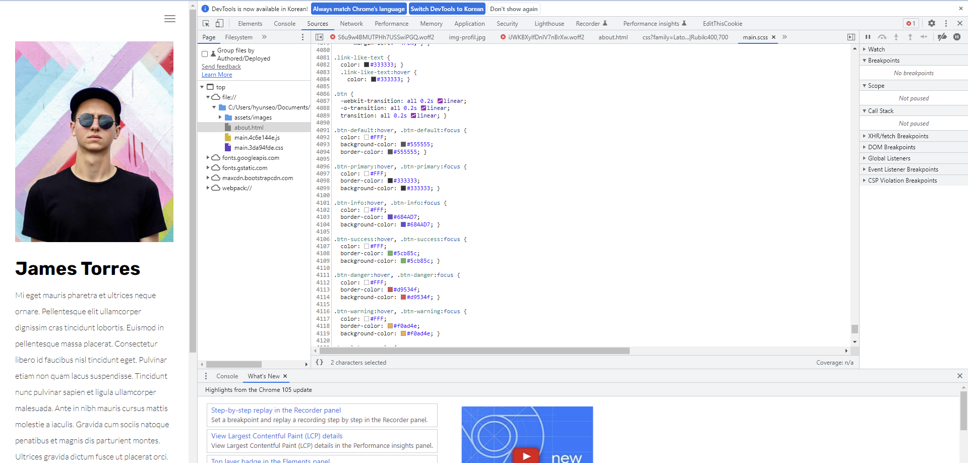 개발자 도구의 Sources 탭에서 소스 코드를 확인할 수 있다.