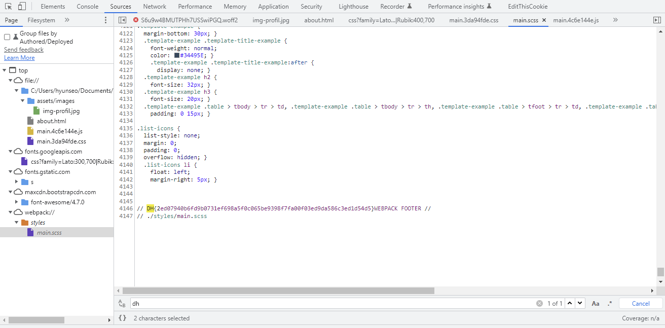 소스 코드의 main.scss 파일에서 플래그를 발견할 수 있다.