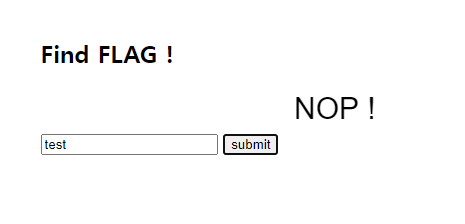 틀린 플래그를 입력하니 NOP! 이라는 문구가 나타난다.