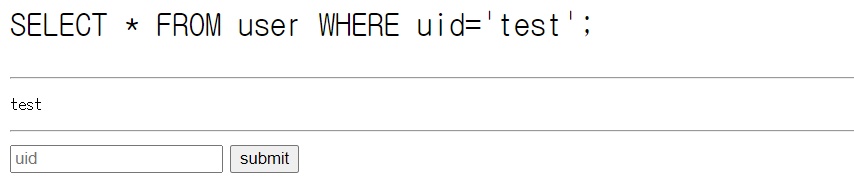 문제 페이지에서는 사용자가 uid 입력창에 입력한 값을 출력한다.